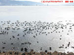 水面に浮かんでる白鳥もいたり、氷の上にいる白鳥もいたり…