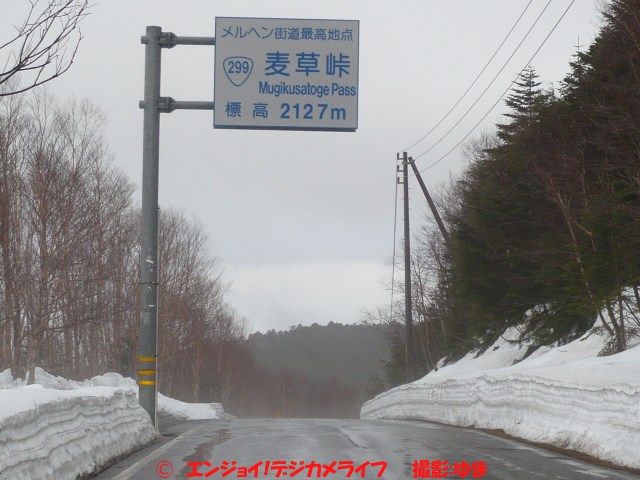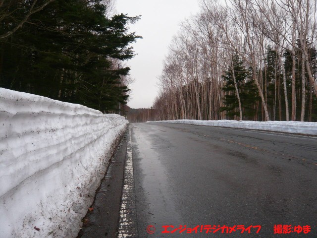 冬季通行止めが解除されて間もなかったので、道路の脇にはまだ雪がありました。