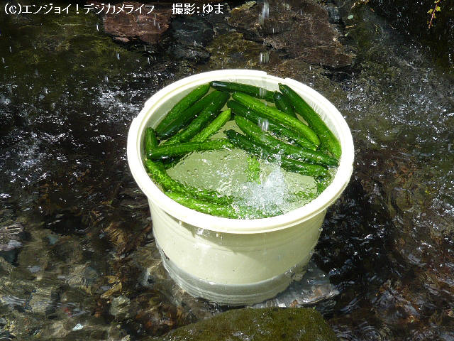 園内を歩いていたら、1本100円(だったかな?)で冷やしキューリが売ってました。
