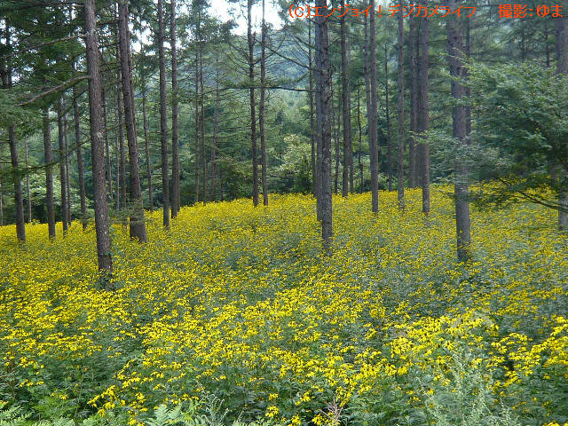 その途中、何やら黄色い花らしきものが一面に広がっているのを見つけて、車を停めて見てみました。