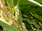 でも、作業をしてる人を撮るのは失礼かと思い、なるべく終わってるところを探して、ふと目をやると、イナゴを発見!