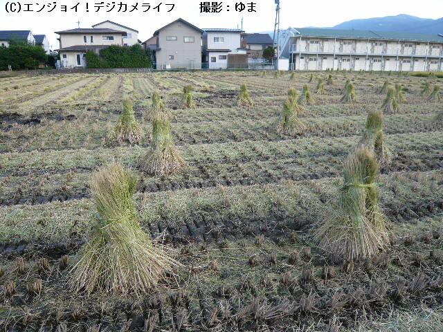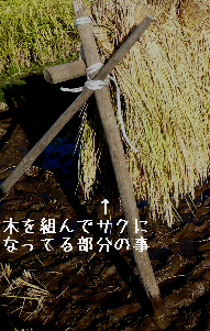 そして、珍しいかどうかは分からないけど、ウチの辺りでは普通に見かけるハゼにかけて自然乾燥させてる『ハゼ掛け米』(「ハゼ」って漢字がわかんないですm(_ _)m)も撮ってみました。
