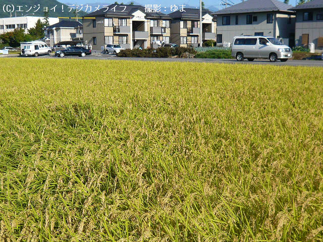 でも、まさしく『実るほど 頭をたれる 稲穂かな』の風景が広がってたので、撮ってみました。