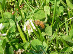 土手のしろつめぐさにミツバチがとまってたのを見つけてマクロ撮影をしてみましたが…