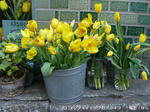 毎年この日、全国各店に黄色いチューリップを持って行くと、店員さんが目玉のシールを付けて「うそ花」にして飾ってくれます(^O^)