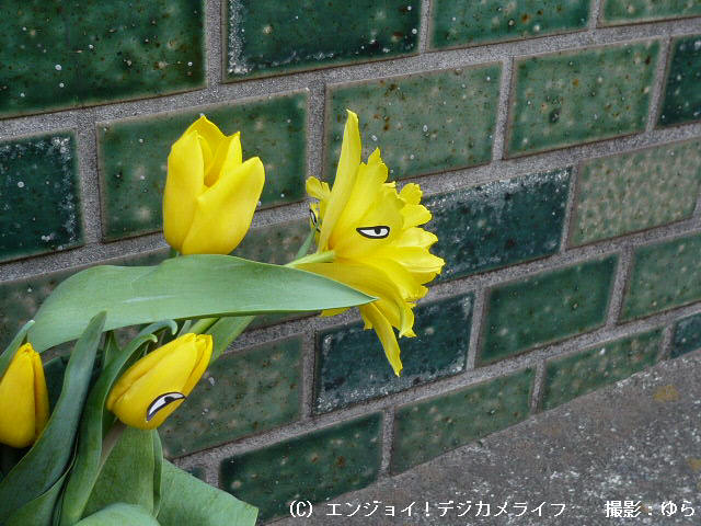 黄色いチューリップに目玉シールを貼ると、どこと無く「うそつき」に似てますよね(笑)