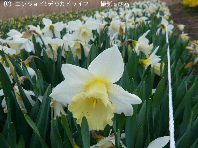 数年前から、その桜のすそにある川の土手に水仙畑も出来ました。