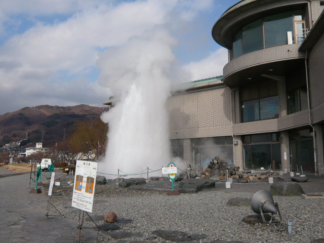 せっかくここまで来たのだから、久しぶりに間欠泉が上がるのを見ていこうと思って、味噌工場の向かいにある『間欠泉センター』へ立ち寄りました。