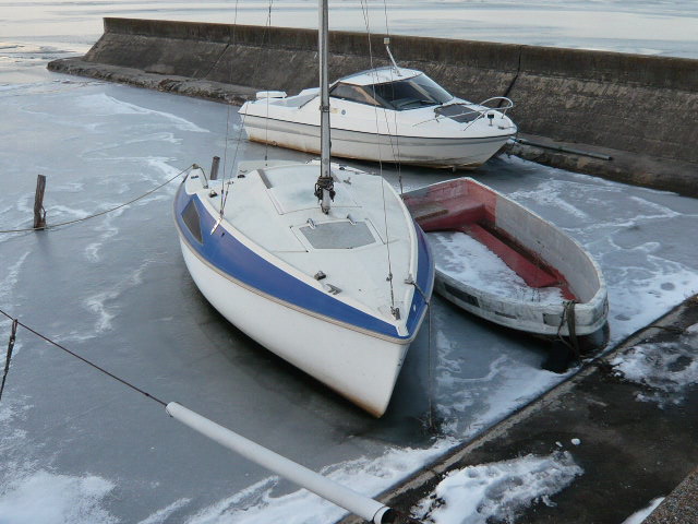 漁港に停泊しているであろうヨットやボートや船は、厚い氷にはばまれ身動きが出来ないような状態でした(笑)