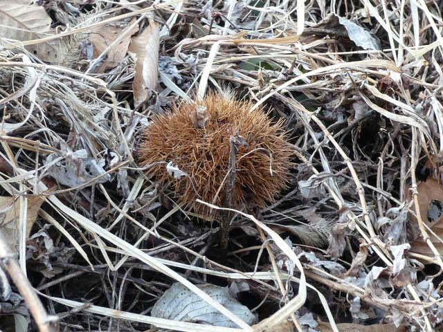 車を停めた所には、忘れられたかのようにひとつだけ栗が落ちてました(^^ゞ