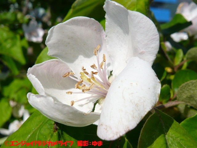 上の写真の花は、諏訪市の市木のかりん(正確にはマルメロですが)の花です。