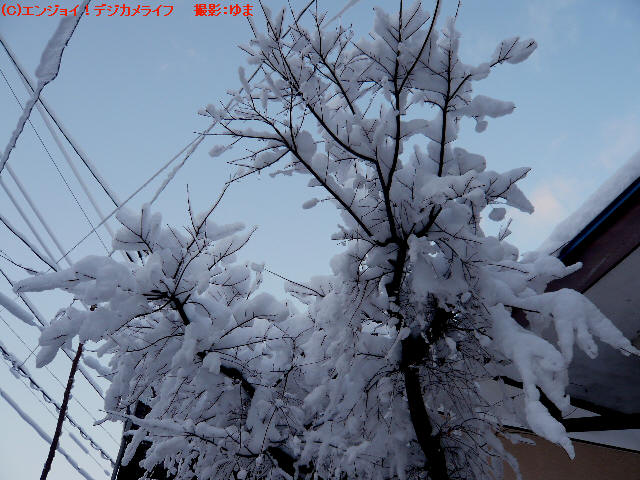 ほぼ終わりかけていた雪かきに参戦し、庭の雪をかいていたら隣組の決められた範囲をかき終えた親が戻ってきて、紅葉の木の雪を落とそうとしていたので「写真を撮りたいから、ちょっと待った!」と手を止め、慌ててカメラを取りに家に戻りました(笑)