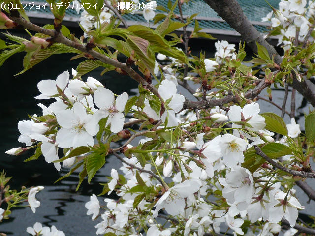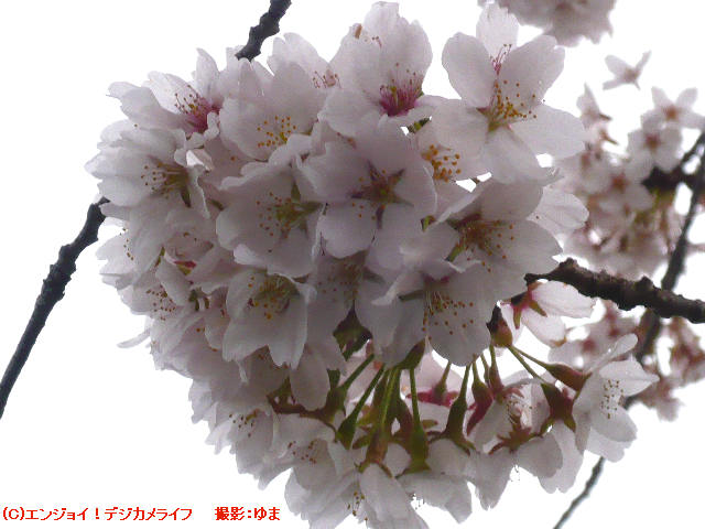 スカイタワーを見終わり、最寄り駅へ向かう途中で、白い花びらの桜を見かけ、思わずカシャリ。