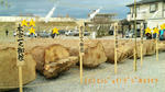 実際、山から曳かれ、坂を降り、川を渡って柱を休める所に置かれている、上社の実際の柱です。