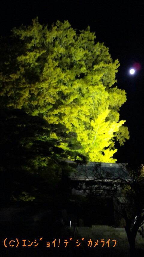 お寺のイチョウの木がライティングされていました。