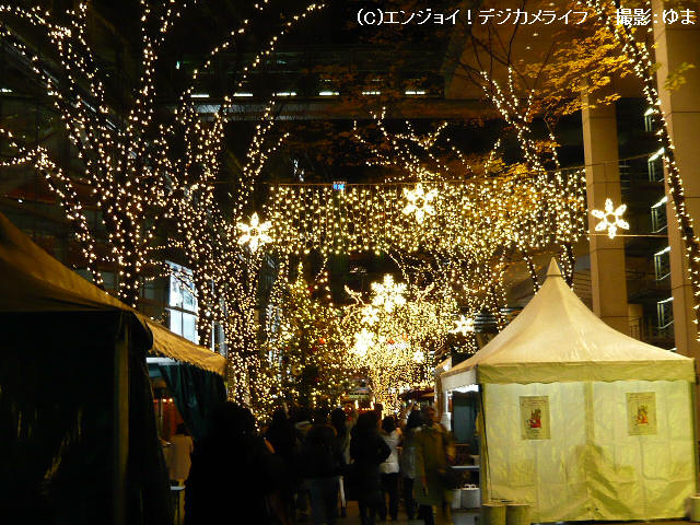 帰りに会場を出てみたら、クリスマスのイルミネーションがキレイで撮ってみたけど、高感度モードで撮ってみたので画像が明るいです。