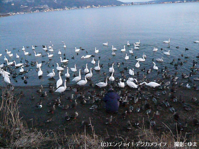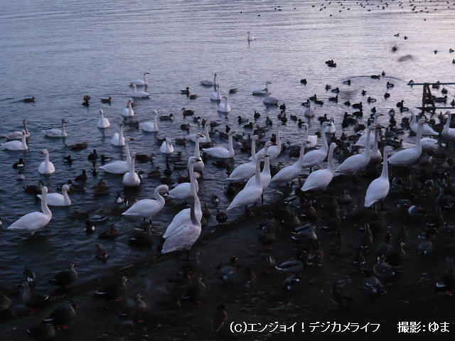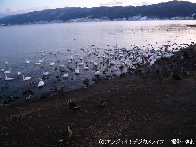 ふと思いつき、陽がかげった夕方に湖畔の「白鳥飛来地(白鳥のお宿)」へ立ち寄ってみました。